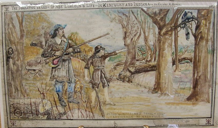 The Formative Years - Of Abe Lincoln's Life - In Kentucky and Indiana by George H. Honig. At bottom, 1950 Geo. H. Honig, On The Cumberland Trail 1816, Louisville to Nashville.