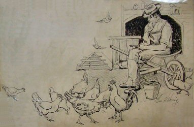 No. 4 - Signed Sketch of Farmer Feeding Chickens