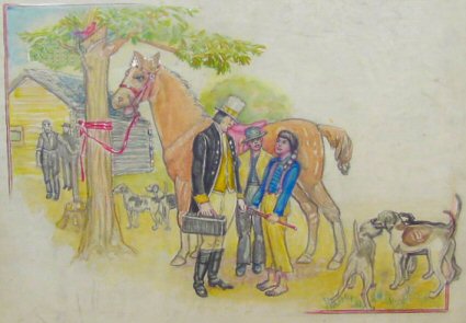 No. 12 - Water Color of Eagles Catching Chickens in a Pioneer Setting